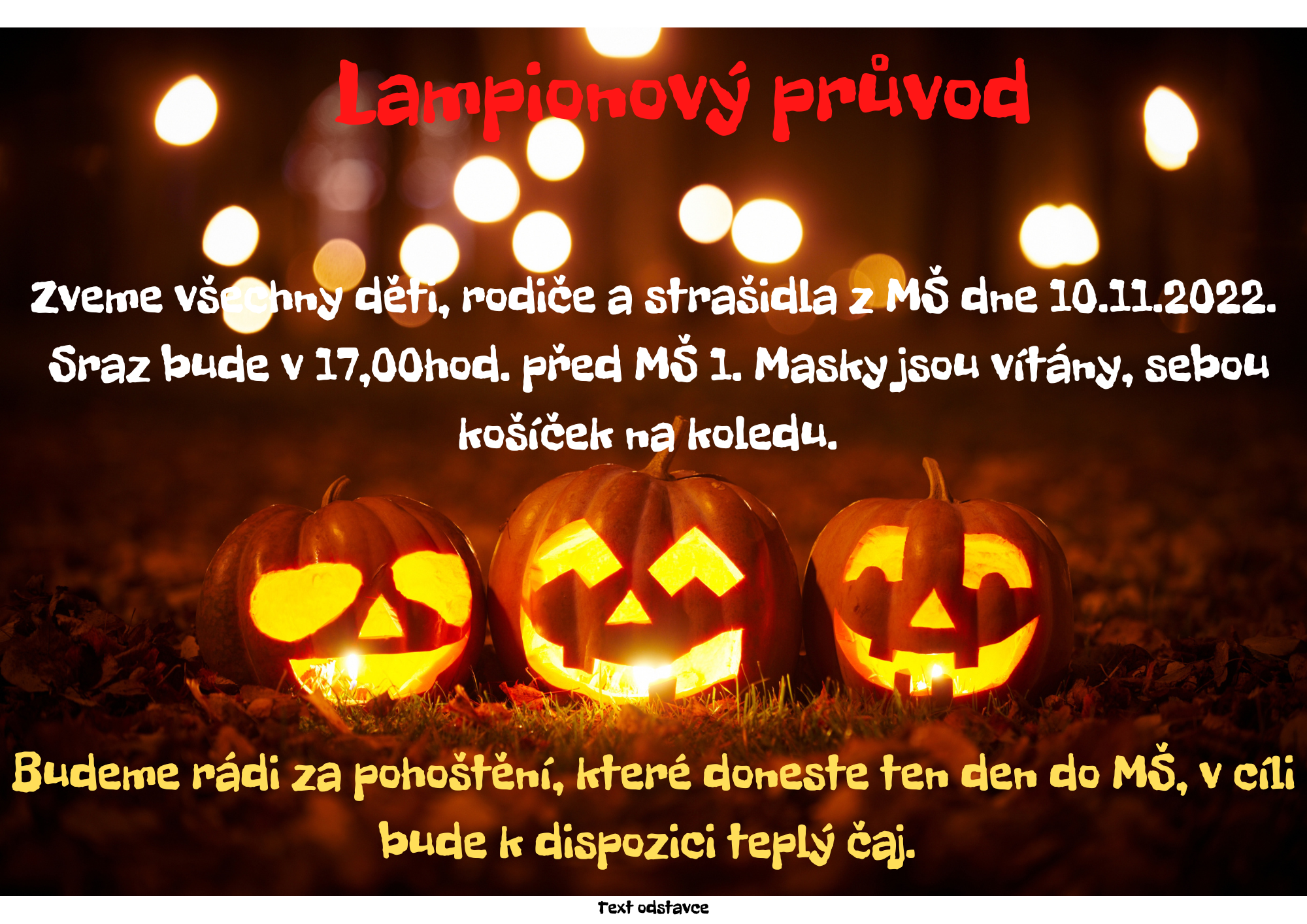 Prosíme o opatrnost - v době konání lampionového průvodu bude v ulicích Krátká, Tyršova, B. Němcové, Lípová a Ke hřišti zvýšený pohyb pěších.