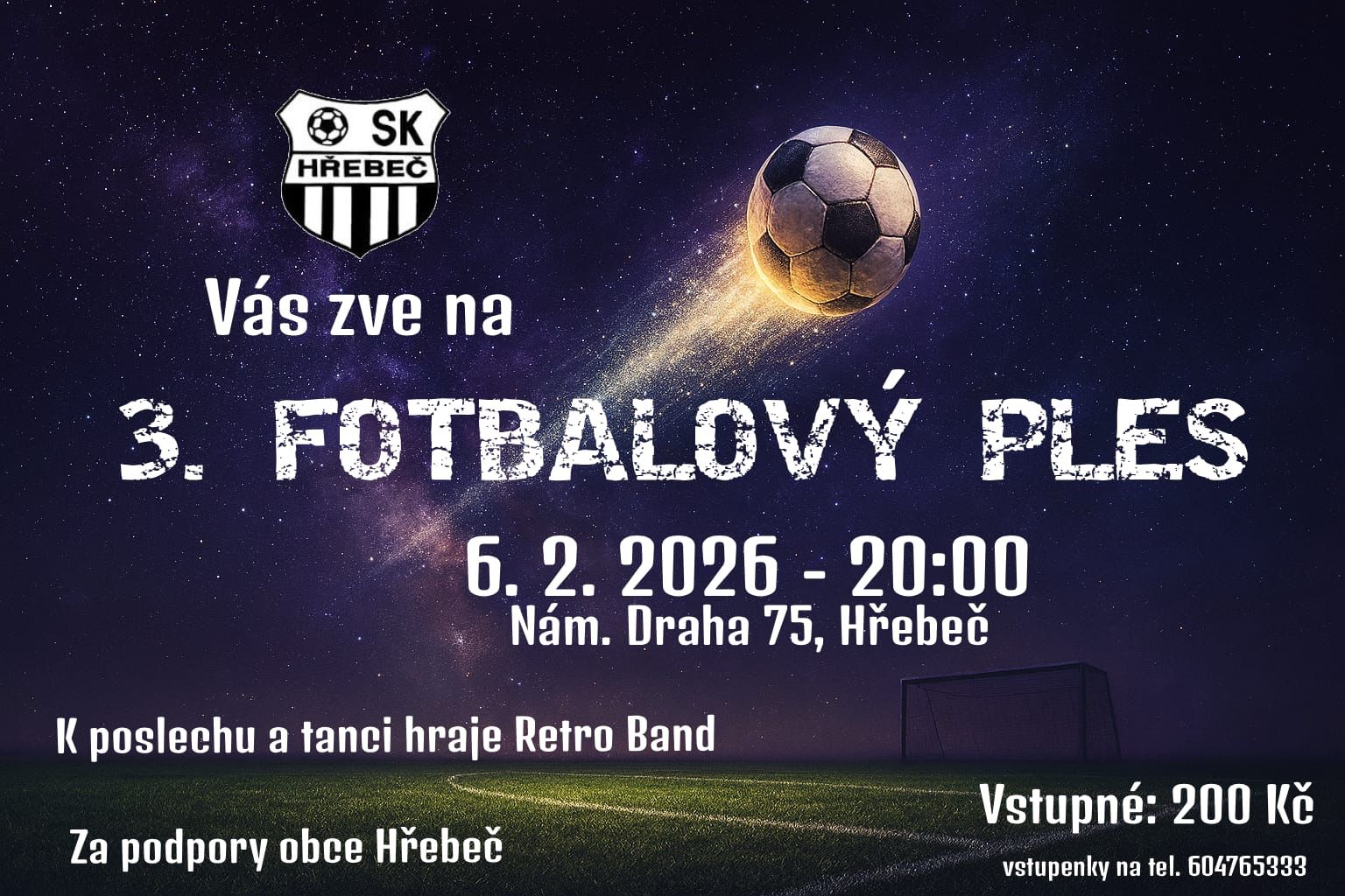 K poslechu a tanci zahraje Retro band, těšit se můžete také na zajímavou tombolu. Večer zahájí vyhodnocení uplynulé sezony a ocenění hráčů mládežnických kategorií.